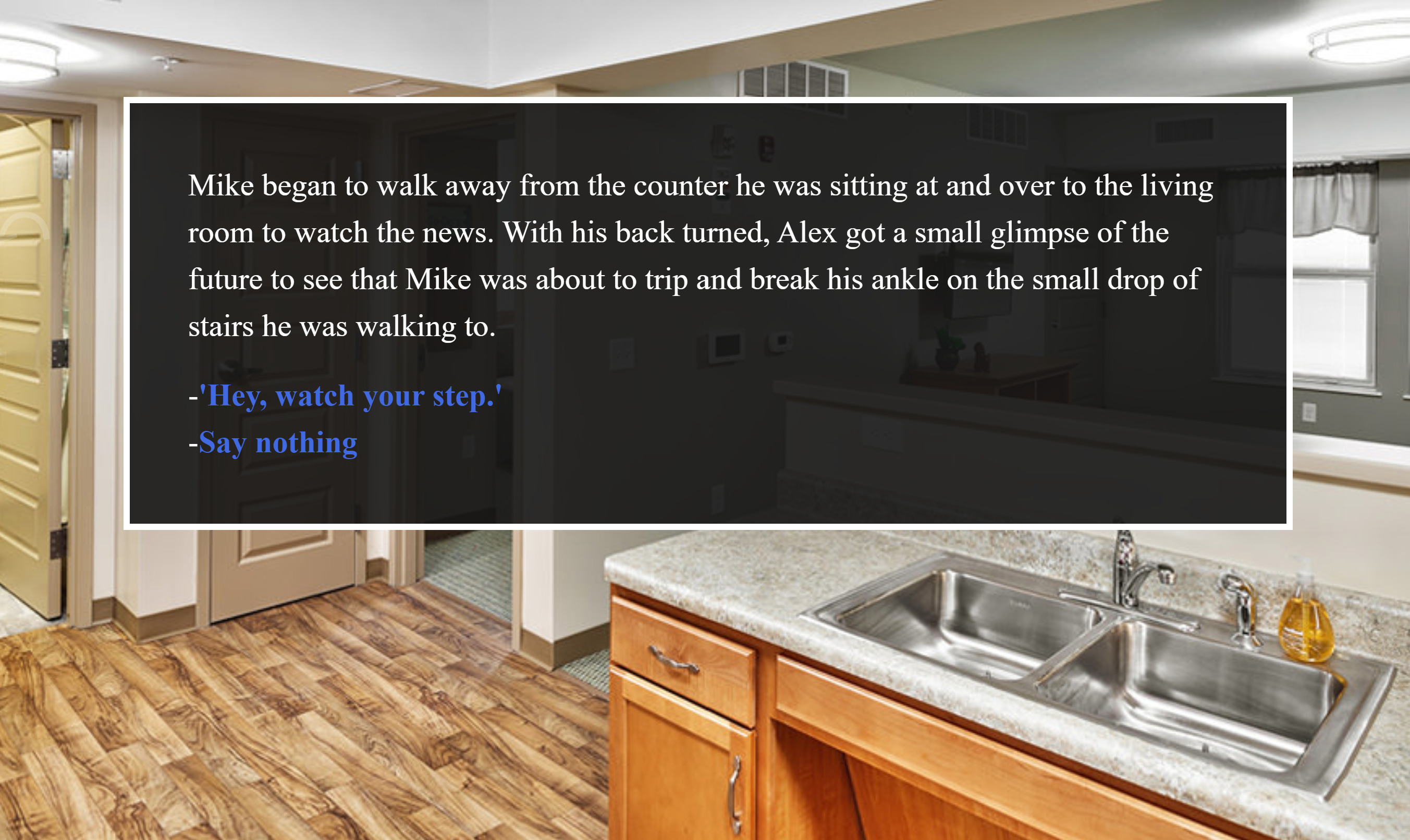 The culmination of my work for the IGME 529 Foundation of Interactive Narrative class is in the story 'Don't Push Your Luck'. The requirments combined several storytelling techniques learned throughout the semester added to a story that would be told through three acts that would express character development and reactions. My story is about two roommates who can see the future and read minds respectively who attempt to keep their secrets from each other when betting goes too far. While rudamentary in interactive elements, I'm still happy with the way that this project turned out, especially with handling Twine to create all the transitions and sound effects.