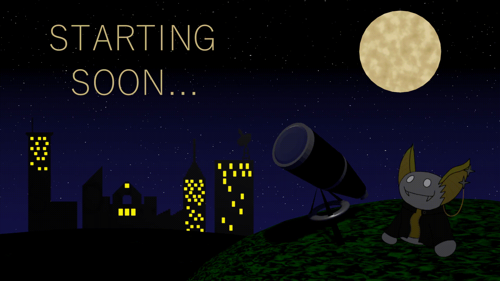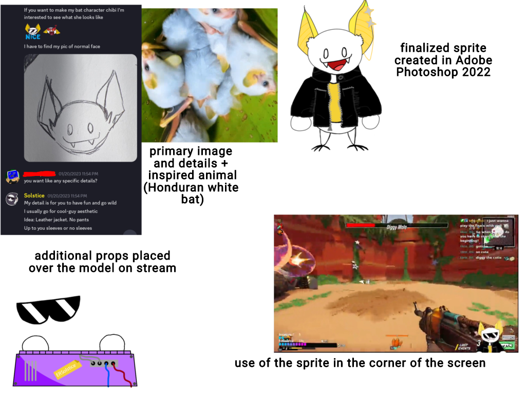 During my junior year at RIT, I found an advertisment on campus for ERSolstice, a student who streamed video games of Twitch. I became a reccurent viewer, and soon propsed to help out as a channel artist, with my main contribution being Solstice's PNGTuber. Solstice came up with the idea for the design before I drew the images used for the model in Adobe Photoshop, as well as searching for tutorials to set up the PNGTuber in OBS. Recently I contributed another piece for the channel in the form of the 'Starting Soon' screen, which I made by creating sprites based on the PNGTuber, and creating the assets, shaders, and animations in Blender.